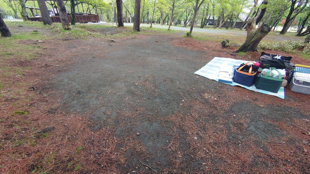 荷物運びがしたくなかったので、道からも水場からも近いこちらの場所に荷物を下ろしました。