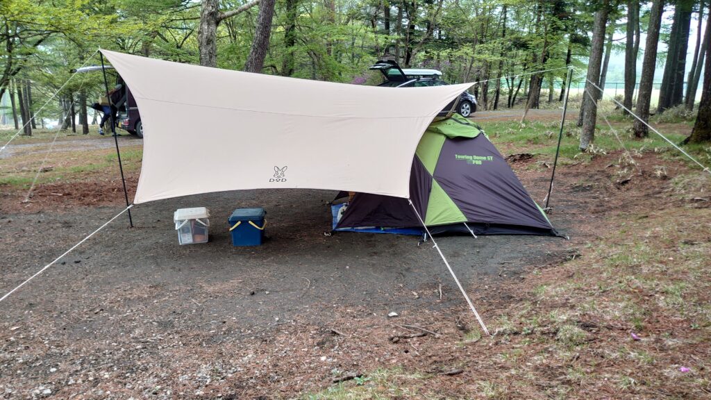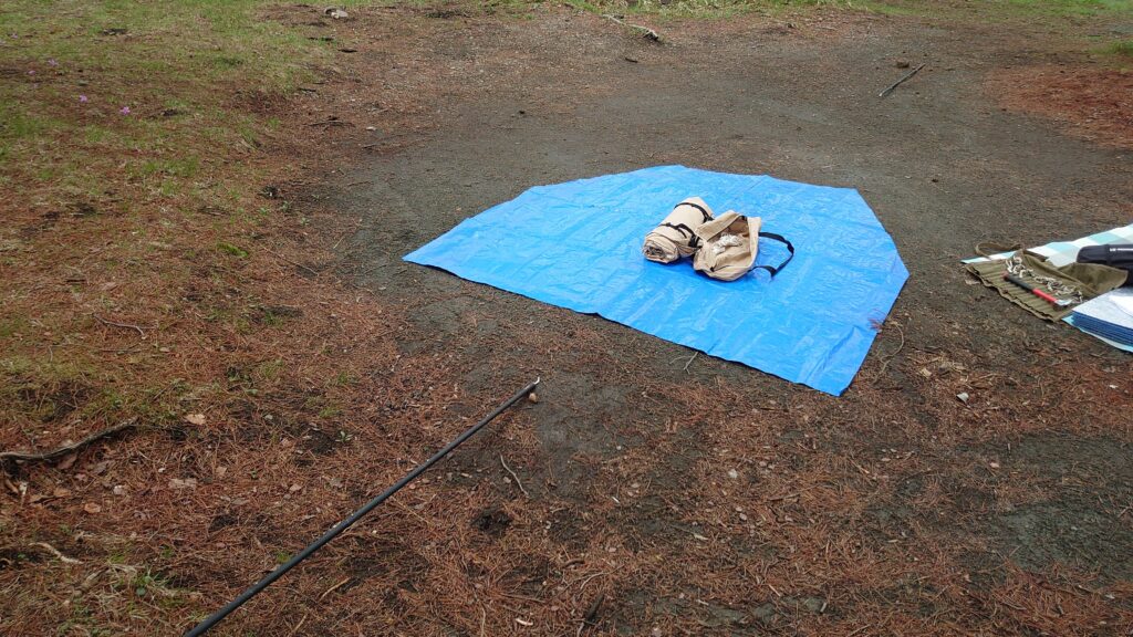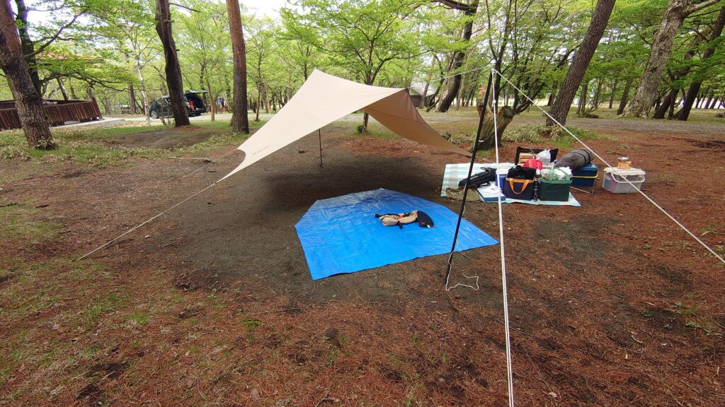 ブルーシートがツーリングドームSTを設営する場所です。