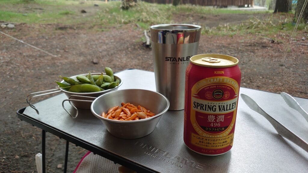とりあえず、いつものつまみで口開けです。今回選んだビールは、キリンのスプリングバレー豊潤という新発売のビールです^^