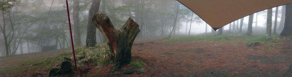 雨風ともに強くなってきたので、濡れないように荷物を片付けてテントに入りました。少し早めでしたが、横になったらすぐに眠りに落ちます。
