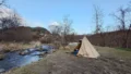 都幾川の三波渓谷に古民家を移築し建てられた日帰り温泉施設やジビエなどが楽しめるレストランが併設された施設です。ソロ・デュオキャンププランのエリアは遊歩道沿いのスペースを利用しています。温泉施設へのアクセスはよく、良質な温泉を存分に楽しむことができます。料金もソロであれば3000円で温泉の入り放題も含まれているのでコスパも大変に良いところです。ただ、遊歩道沿いなので、キャンプに全く関係ない人が散策に訪れたりもするので気になる方は設営を工夫してみるとよいでしょう。