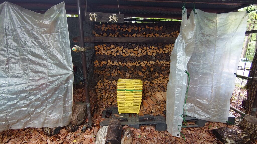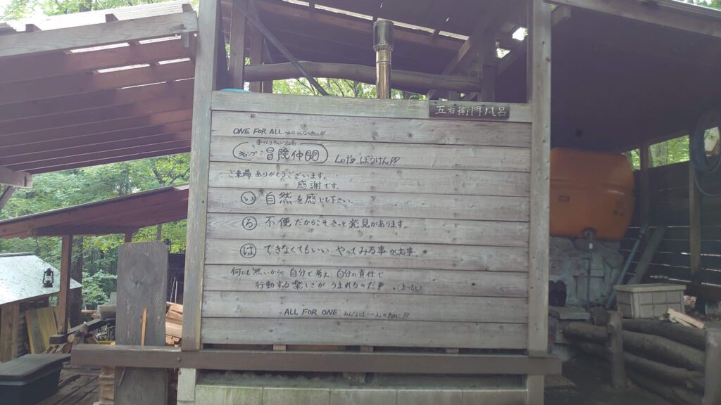 ここがお風呂です。五右衛門風呂があり、普段は入る人が薪で風呂を沸かすとのことですが、コロナ禍の今は管理人さんがわかしてくれるとのことです。