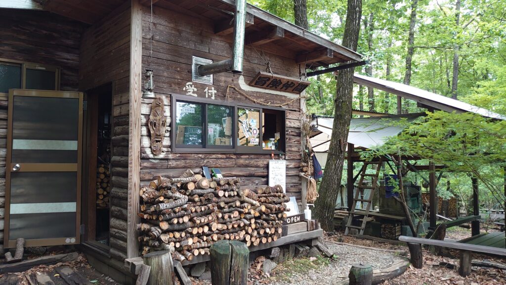 奥の方へいくと受付がありました。ここで受付をしてもらい利用の仕方の説明や、施設の案内をしてもらいました。とても丁寧に、キャンプ場内をぐる~っと一周して説明していただきました。とにかく手作り感のある面白いキャンプ場です。