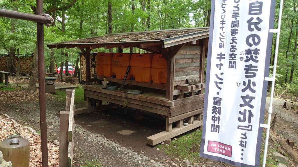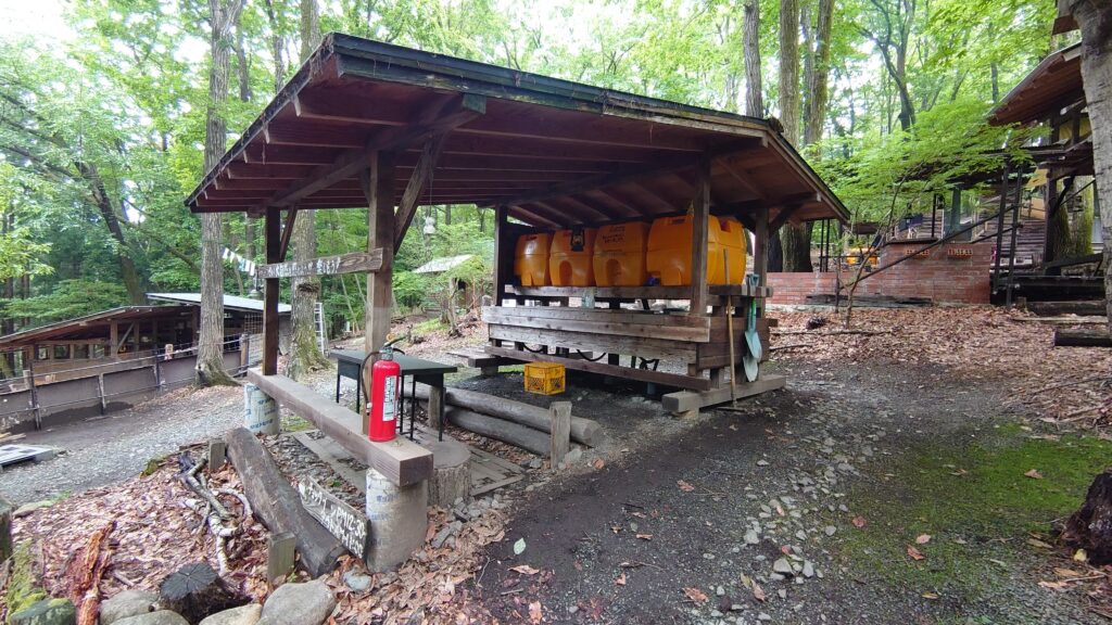 ここで洗い物などをすることができます。見ての通り、水はタンクに貯められているので貴重品です。食器などは、一度キッチンペーパーなどで汚れを拭き取ってから洗ってくださいとのことでした。