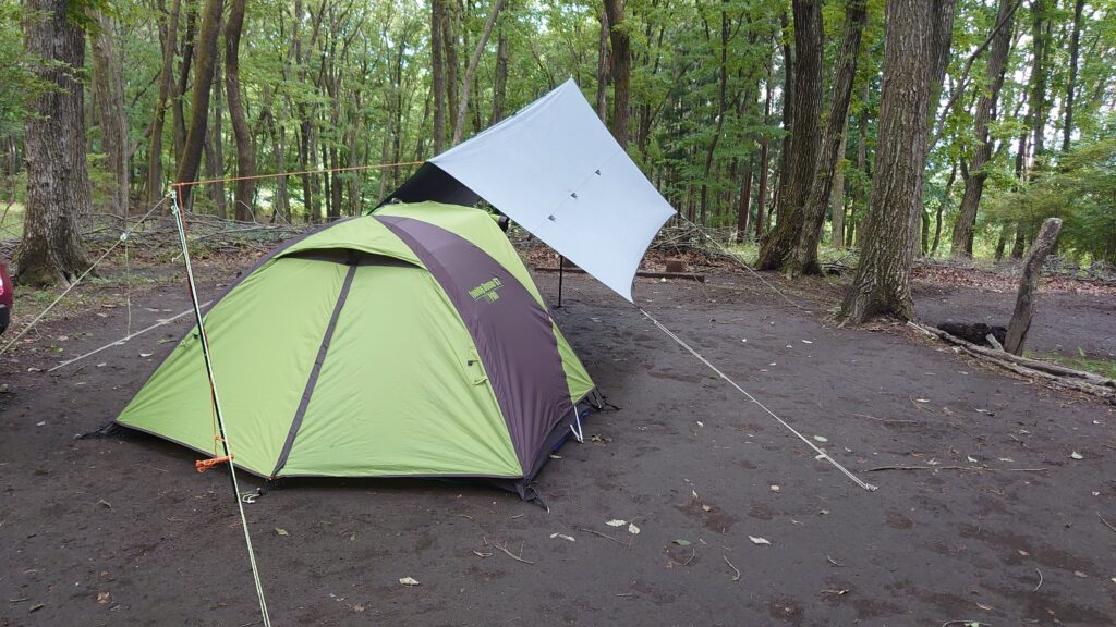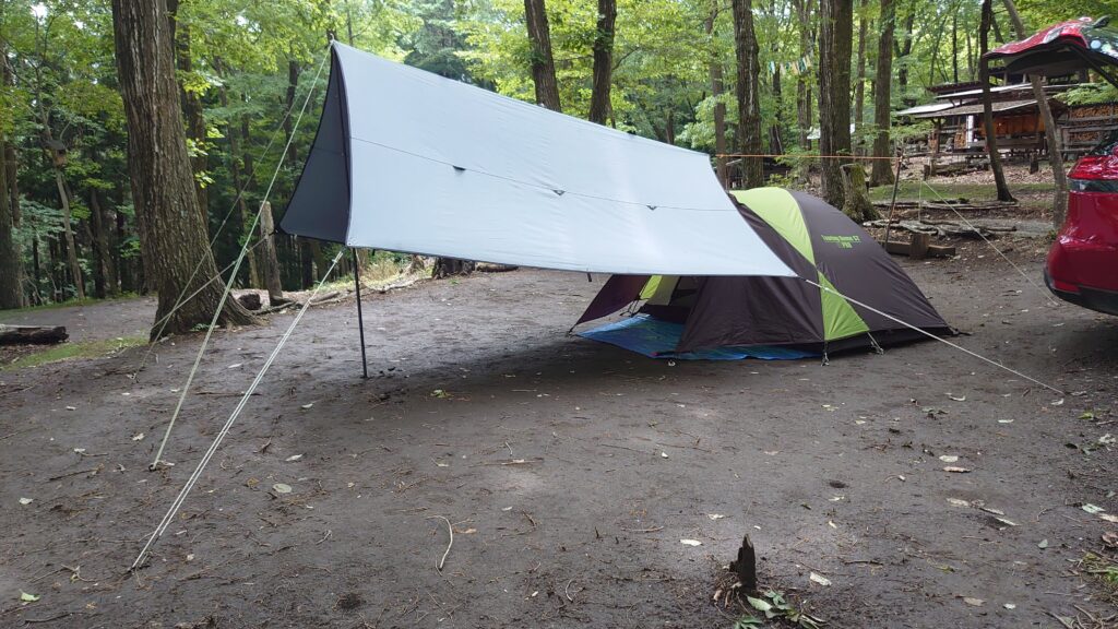 いつものスタイルで、男前タープとツーリングドームSTの組み合わせです。車を近くに駐められるサイトを使わせてもらいました。