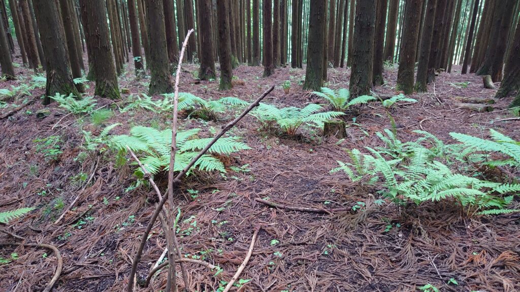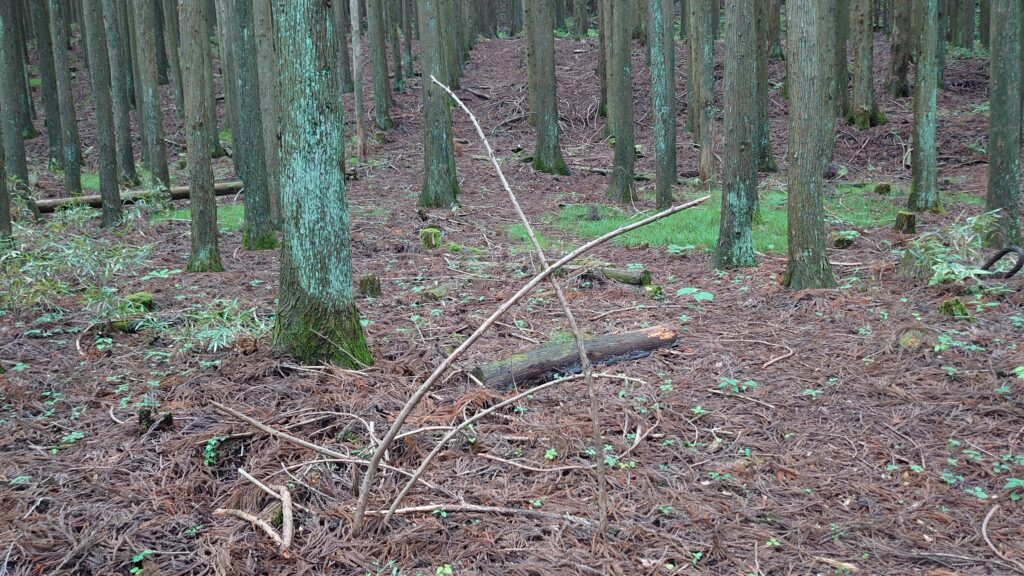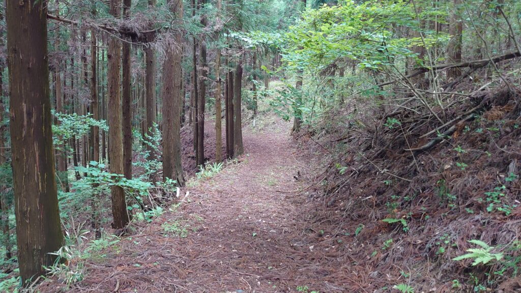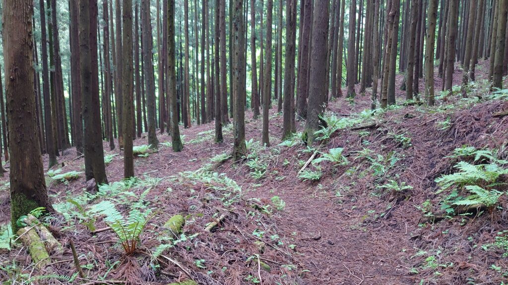 ここを降りて来たわけです。斜面を降りると昔使われていた林道に出ます。