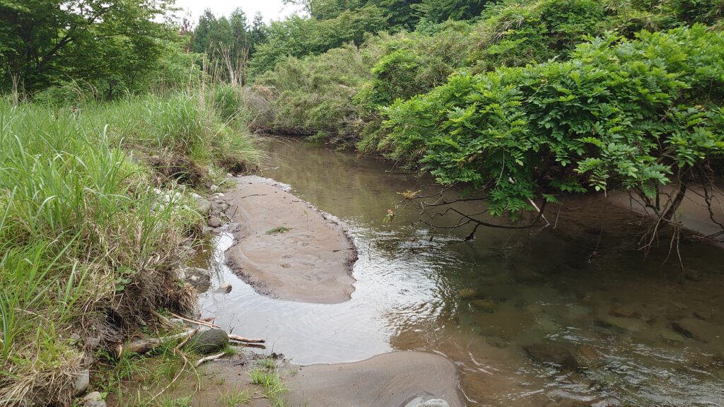 ここから飛び込んで遊べるという記事がありましたが、今は土砂で埋まって浅くなっているので無理だとのことでした。