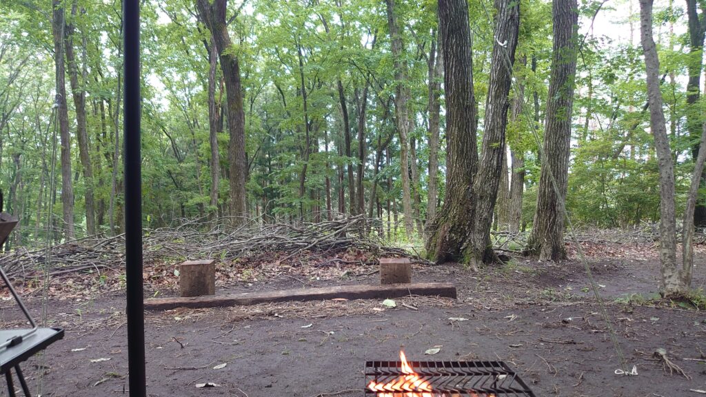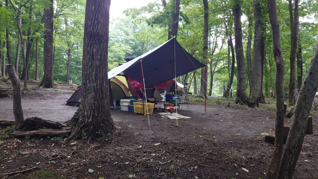 キャンプサイトは基本的に土で柔らかめです。車を乗り入れることはできませんが、サイトによっては、車と隣接させて利用できるところもあります。この日の利用客は4組、うち3組がソロでした。