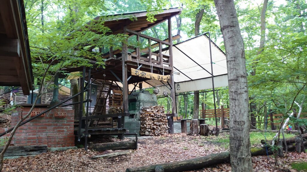 この他にも、たき火小屋と名付けられた小屋がいくつかありますし、野菜やキノコが収穫できる農園のような場所など、管理人さんのアイディアで作られた手作りの施設がたくさんあります。