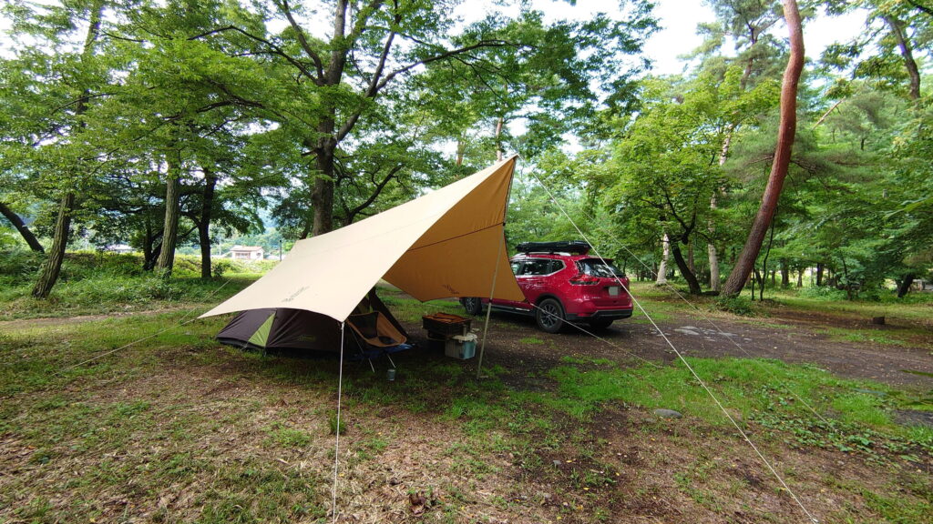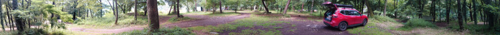 車で乗り入れらるフリーサイトのキャンプ場で、料金も比較的リーズナブルでよいキャンプ場ですが、ハイシーズンはここに50組近く入るそうで、そうなるとかなりカオスな感じがします。キャンプギアの手入れは必要になりますが、梅雨時は狙い目と言うことでしょうか^^;おすすめで!