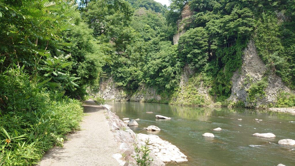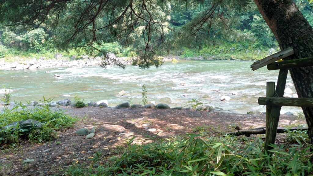 設営した場所から、少し奥へ行くと利根川が流れています。