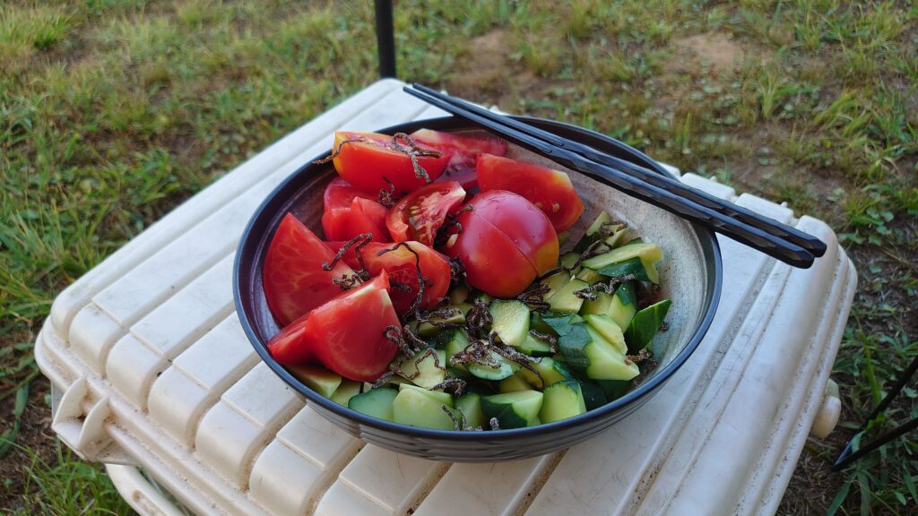 こちらも、来る途中の道の駅「信越さかえ」で買ったトマトとキュウリ^^