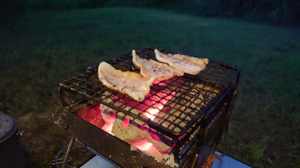 炭をユニセラminiに移して肉を焼いていきます。