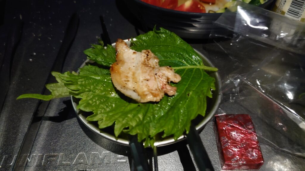 今回も大葉で包んでいただきます。ちなみに大葉も道の駅で入手しました。