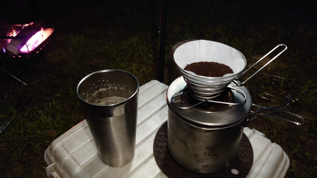 ビールが終わったので、サーバーでコーヒーを落とし、コーヒー酎に切り替えます。こうして初日の夜は更けていきました。