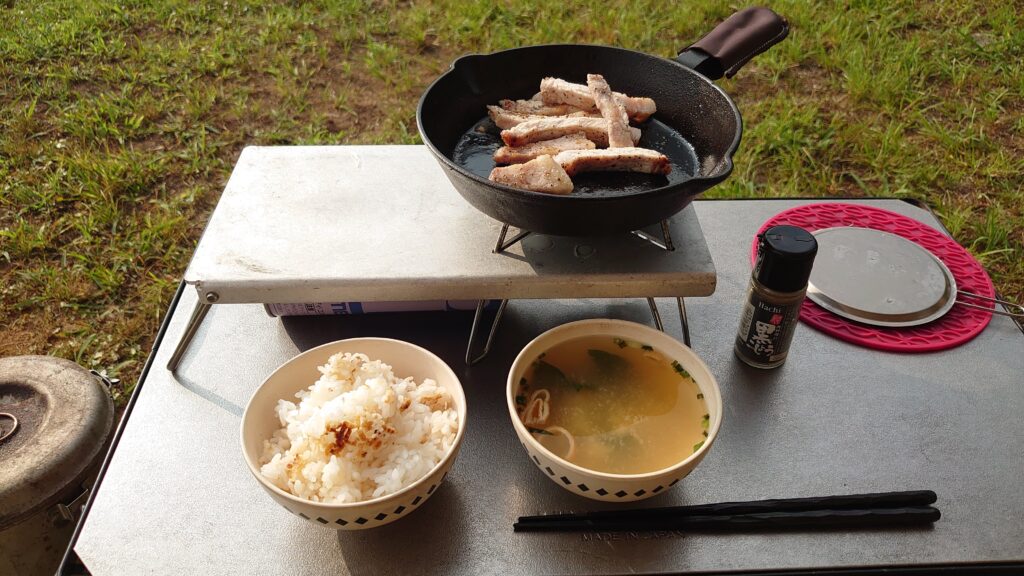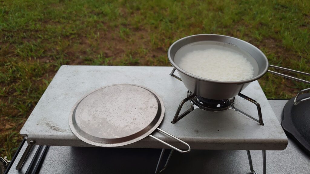 今回の忘れ物は・・・お米です。三泊四日のキャンプに1合しかお米がありません。毎回朝ご飯に1合ご飯を炊いていましたが、やはり、少しい多めなので、0.5合をシェラカップで炊飯することにしました。