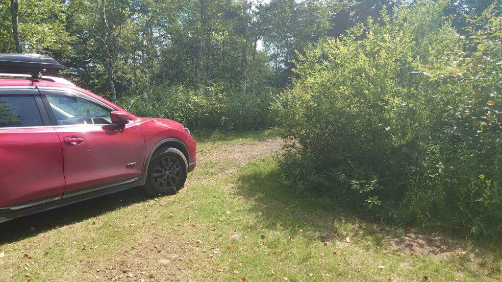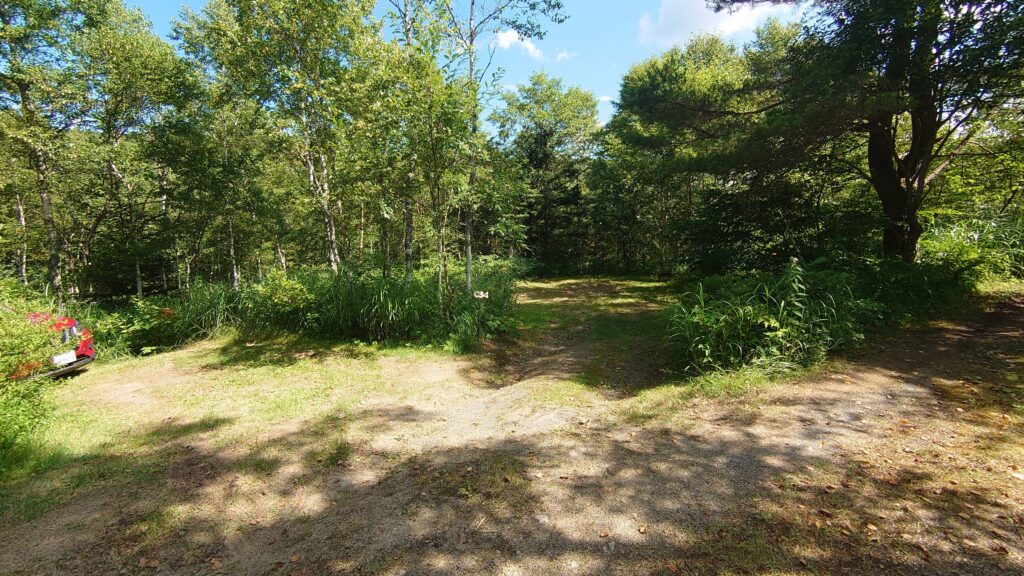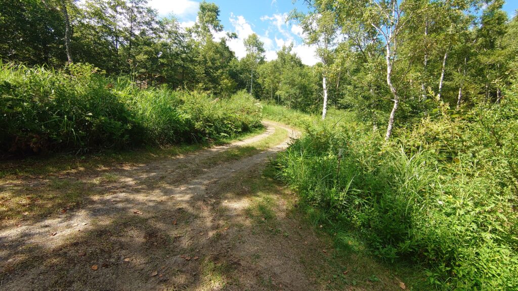 サイトへに入る道です。すれ違いができる幅はありません。