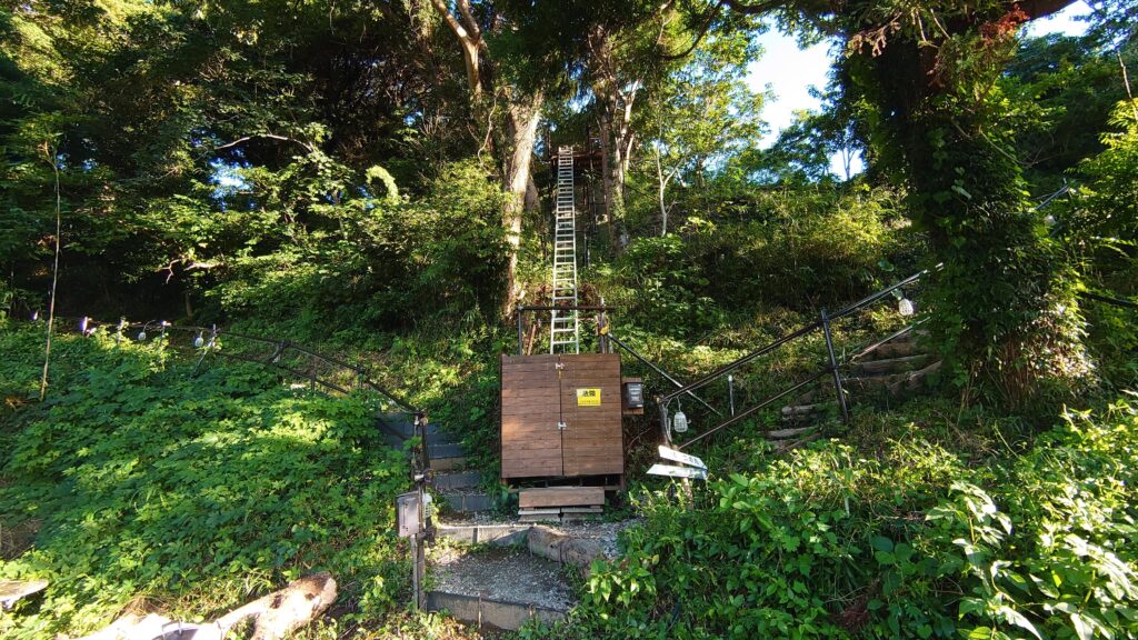 荷物の昇降機が無かったらと思うとぞっとします。荷物を持たずとも、ここの斜面の往復はなかなか大変です。トイレに行くにもここを上り下りしなければなりません。