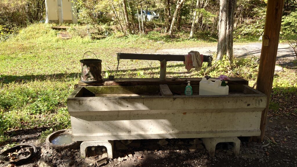 設営が終わったので水を汲みに上のエリアにある水場へ行くことにしました。