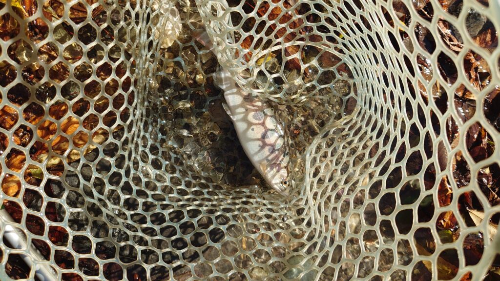 すぐにあたりがあり、上げてみるとこのパーマークは・・・ヤマメです。