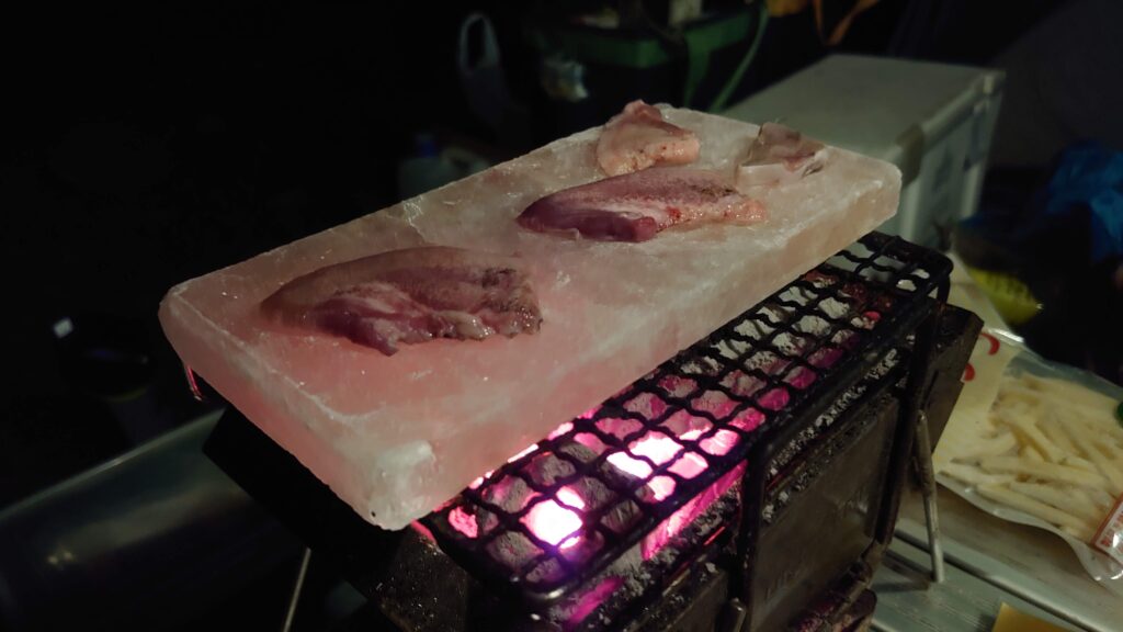今回、一人が岩塩プレートを使ってみたいと持ってきたので、試してみることにしました。
