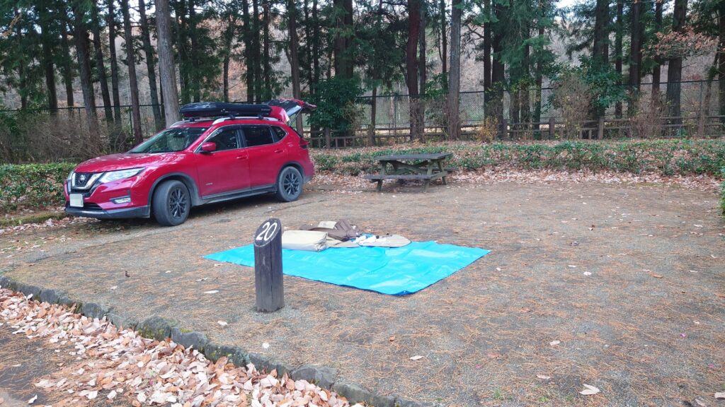 今回利用したのはオートサイトの20番です。13時にチェックインしてサイトに着いた時には周りにはまだ誰もいませんでした。