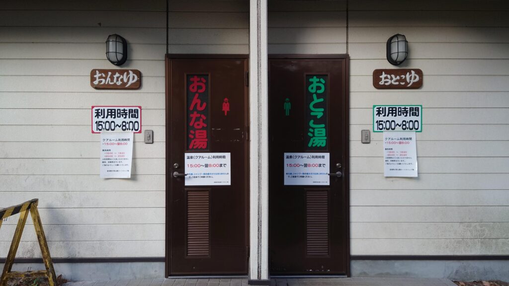 設営が一段落したので温泉に入って暖まってくることにします。