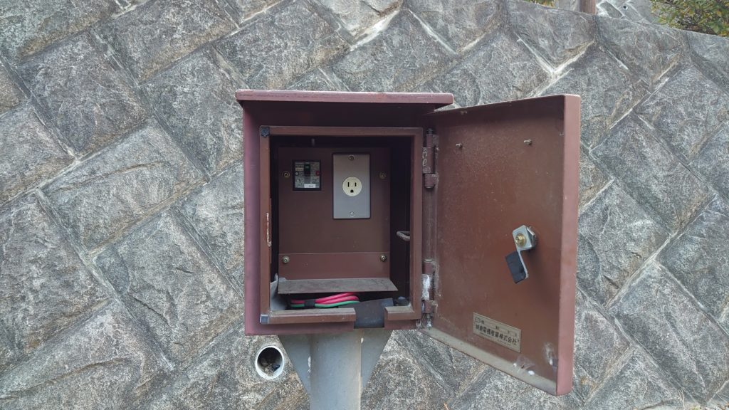 オートサイトは全て電源があります。鍵はかけていないとのことでした。使うときには画面左にあるブレイカーをあげる必要があります。