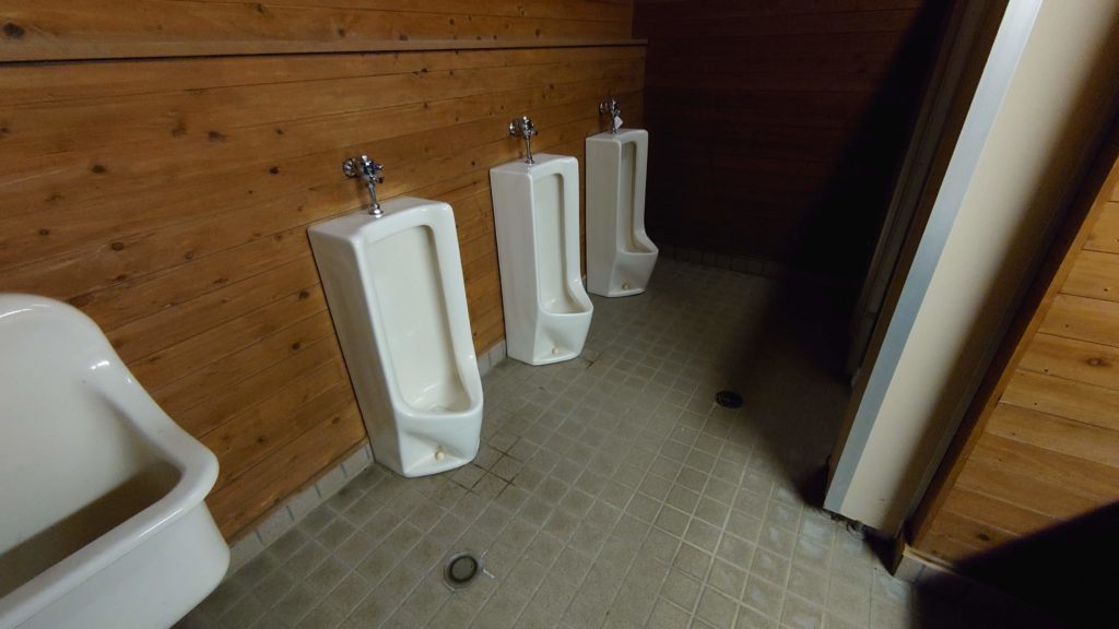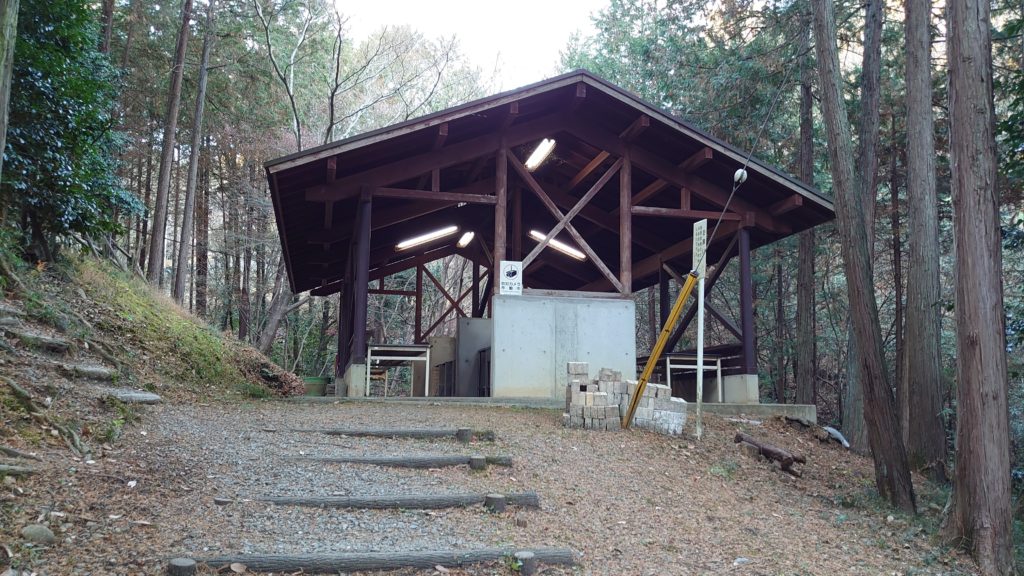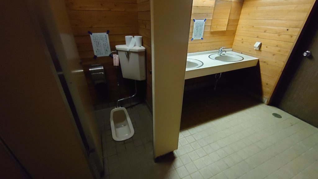 下のキャンプサイトのすぐそばには炊事棟があります。