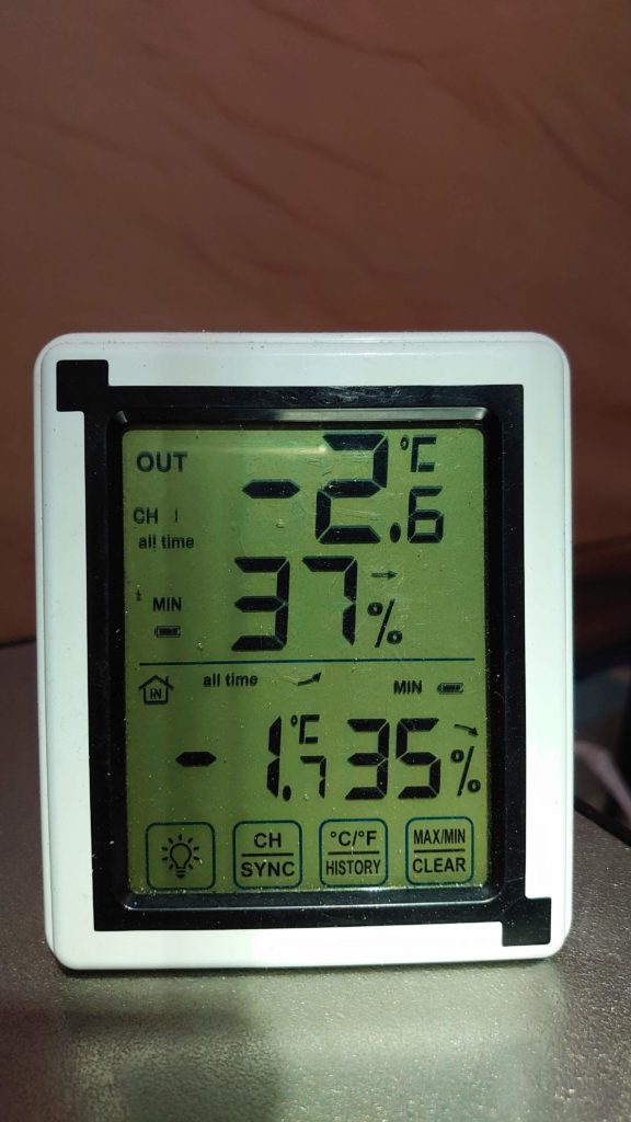 幕外の最低気温は-2.6℃、タープ内も-1.7℃で、結構冷え込みました。外の水道は完全に凍っていました。気がつくとテントの内側も結露した水が凍っており、撤収までにに乾くかどうか^^;のんびり片付けて帰ることにします。夜も静かでのんびり出来るキャンプ場でした。
