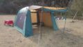 スクリーンタープをギリギリまで寄せて張ってこんな感じです。大きめのテントではジョイントも難しそうですが、ソロなのでこれで十分でしょう。