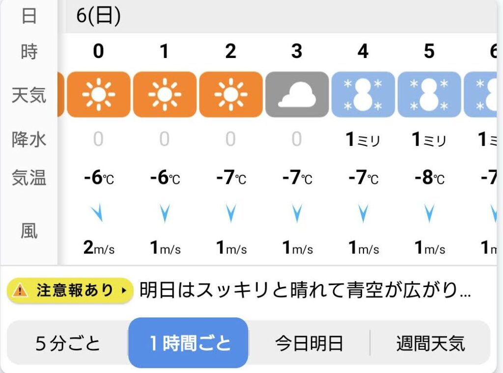 五時前に気温は-2.0℃になりました。せめて風だけでも収まってくれればね^^;