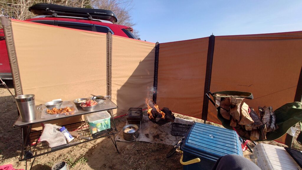風が強いので焚火無しでスタート
