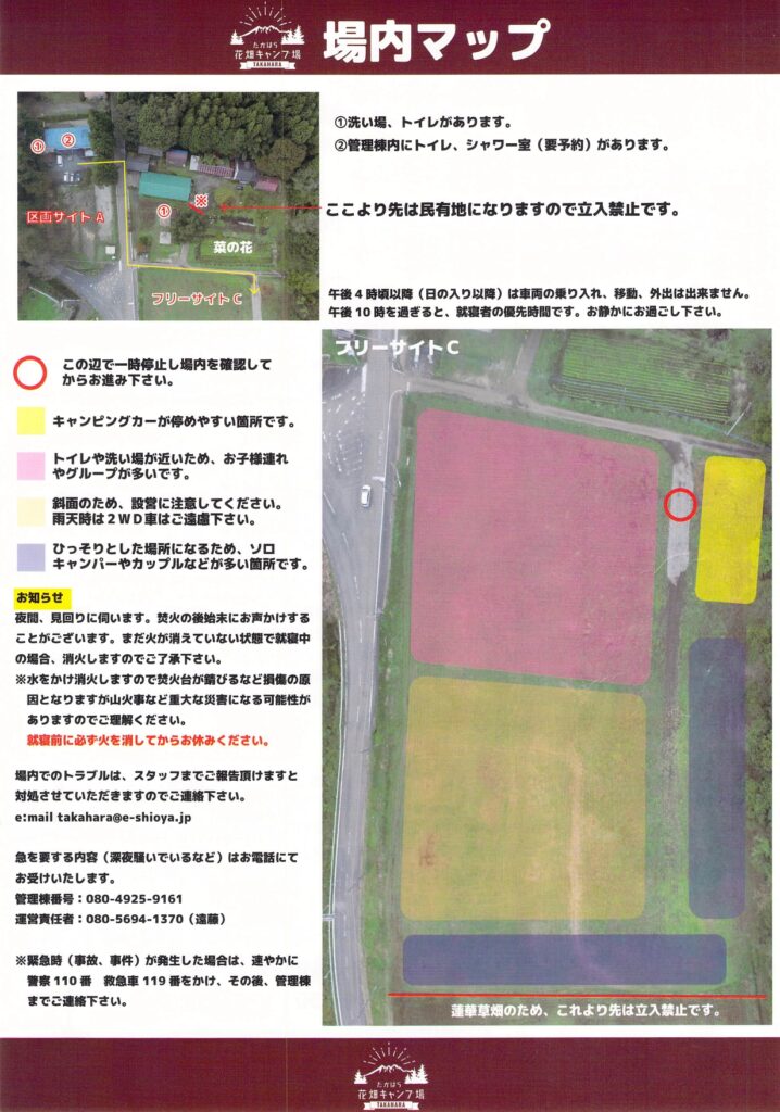 たかはら花畑キャンプ場管理等方面