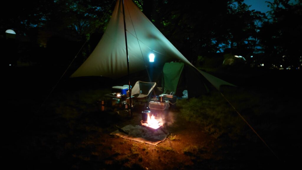 九時過ぎまで外で焚火をしながらのんびり過ごせました。