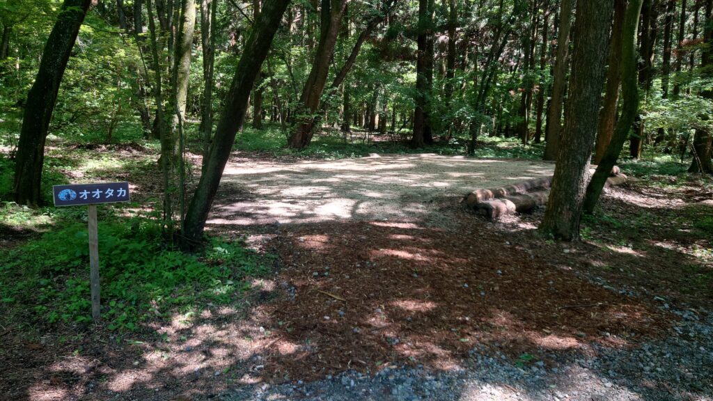 車の大きさからサイトの広さを考えると相当大きな区画であることがわかります。ここにテントを設営したら、マジで森の中のぽつんと一軒家ですね。