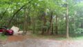 1年前に来たときもほぼ同じ場所に設営しています。雨に降られても木陰で焚火が可能なように位置取りをしています。