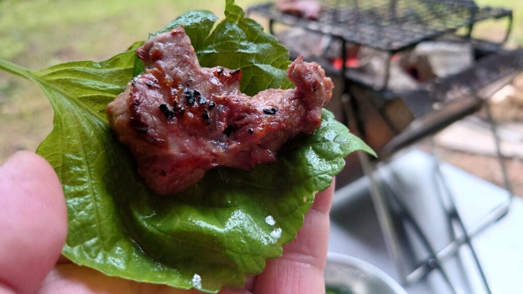 焼き肉を包んでいただきます。うまい^^