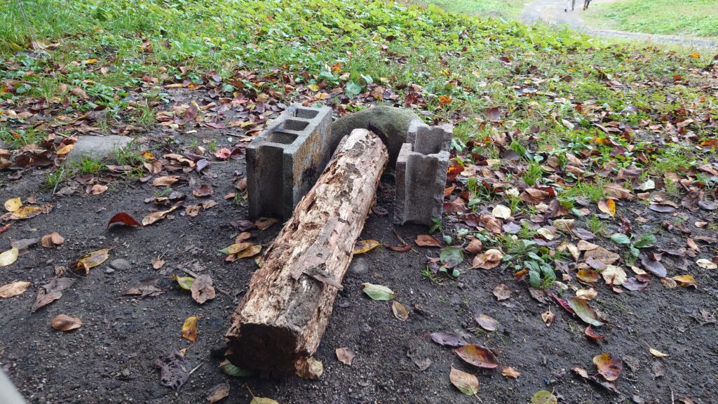 木の幹周辺に大きめの岩やブロックが置かれていました。直火ができるキャンプ場ですので、設営できたら竈でも作って楽しませてもらうことにします。