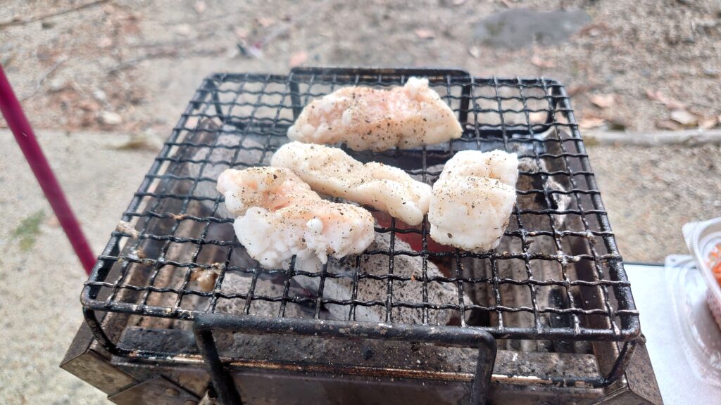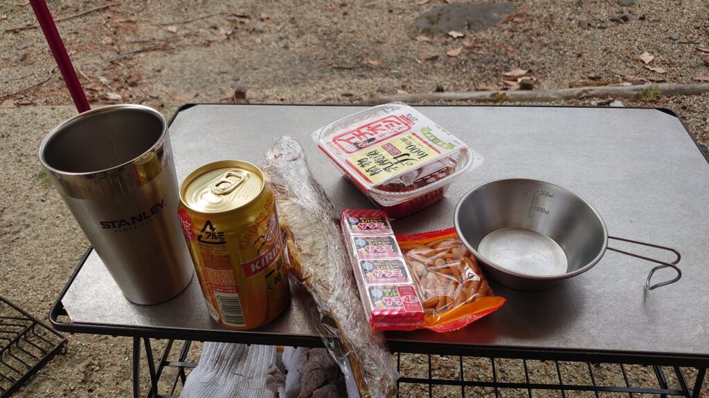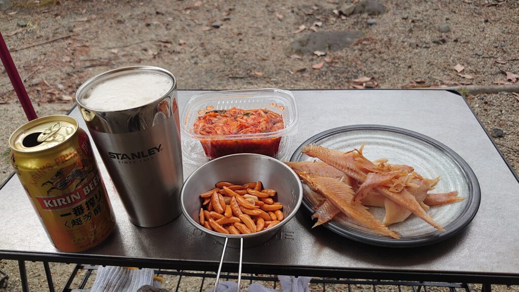 たき火でもしながら、つまみを作って前回のリベンジをしようかと思っていたのですが、少々風が気になります。