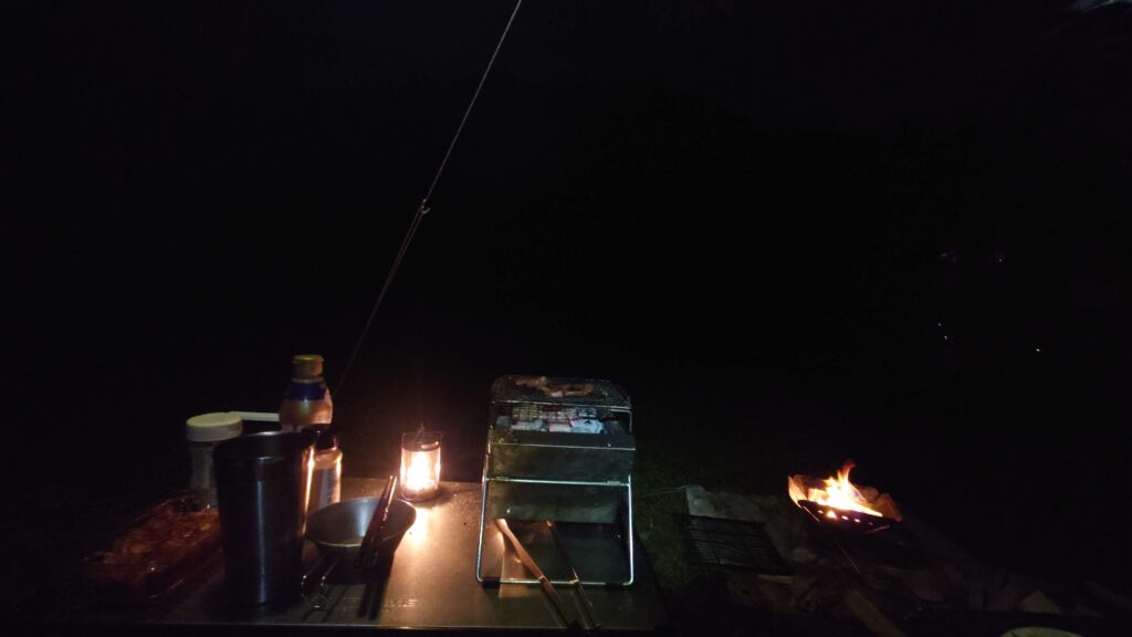 広いキャンプ場に4人だけです。静かな夜を過ごせました。午後9時前に就寝です。