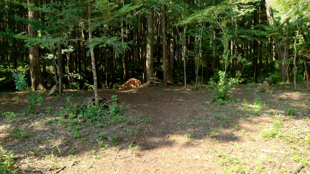 サイト入り口の階段を上ると平らになったエリアが広がっていました。広々としたプライベート空間として利用できそうです。とにかくかなり広い林間キャンプ場で、しかも地形も植生も様々でいろいろなスタイルのキャンプが楽しめそうです。フリーサイト主体で利用料金もリーズナブルなので、涼しくなったら利用させてもらおうと思っています。