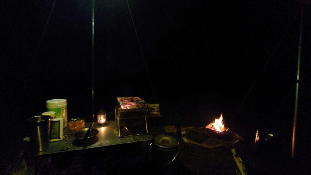 肉ばかり食べていて、少しご飯が食べたくなりました。シェラカップでご飯を炊くことにしましたが、焚火ではなくユニセラの炭火で加熱して炊いてみました。