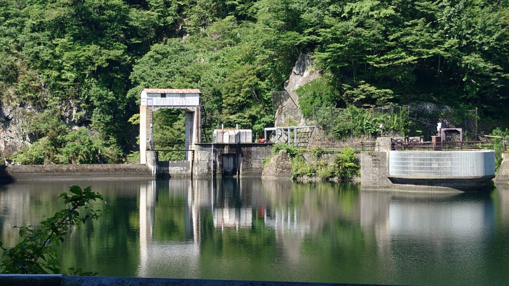 キャンプ場すぐわきを流れている土呂部川にある土呂部ダムです。キャンプ場から少し降りたところにあります。ダムは湖の対岸の道からしか見ることはできませんでした。ダムの正面が気になるところです。残念ながらこちらのダムカードはゲットできませんでした。