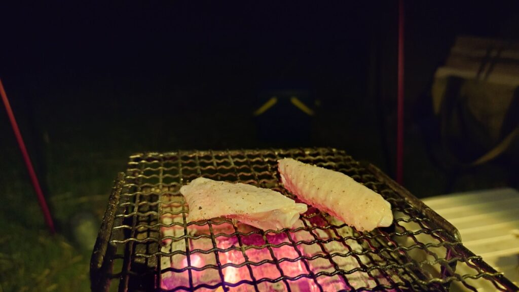 早速鶏の手羽を焼いて行くことにします。こちらは、来る途中の買い物の際、半額表示につい手が動いてしまった物です。今日中に食べればよいので、フードロスに削減にも貢献です。