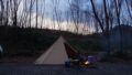 翌朝時刻は午前六時前です。気温は結局0℃まで下がりかなり冷え込みました。石油ストーブも持ってきているのですが、やはりここはたき火で暖をとりたいところです。
