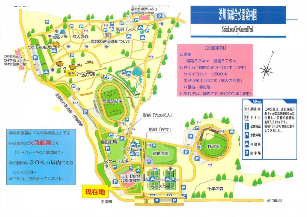 群馬県渋川市の管理する公園で、グランドやテニスコートなど運動施設のほか、遊歩道やBBQ場、キャンプ場などもあるかなり広い公園です。