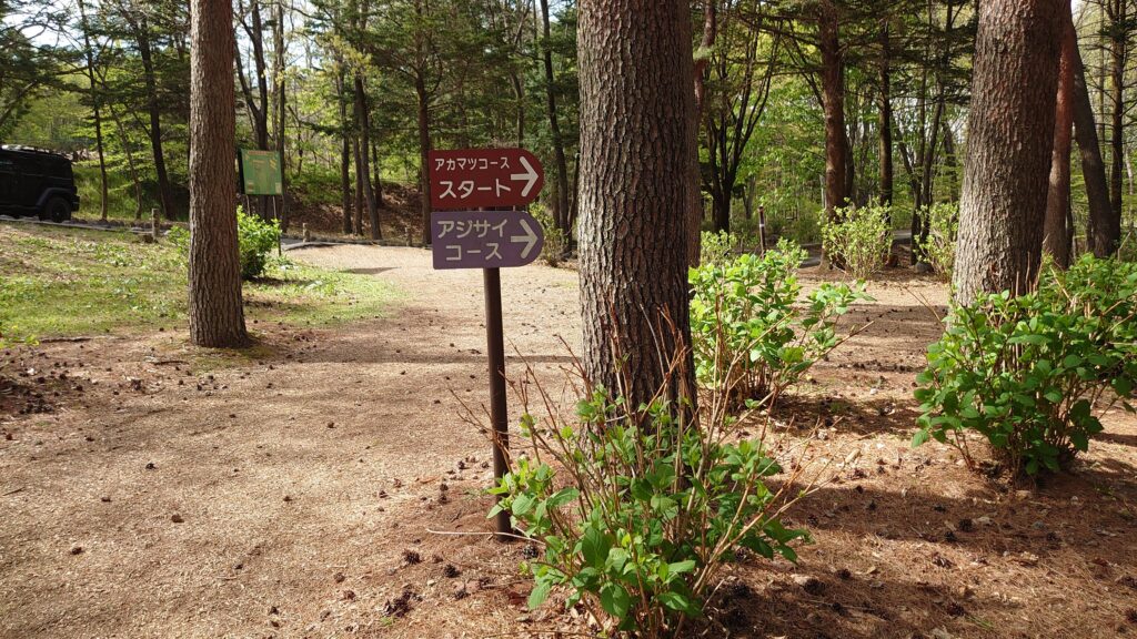 キャンプ場のすぐ側が遊歩道の起点になっています。設営できたので少し公園内を歩いてみることにしました。