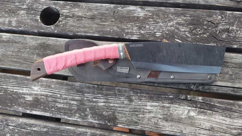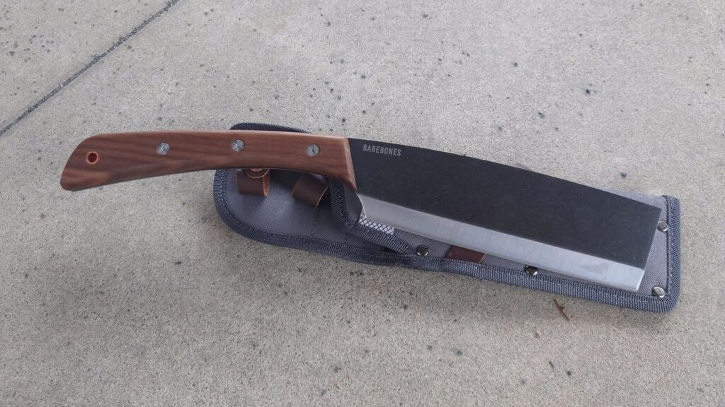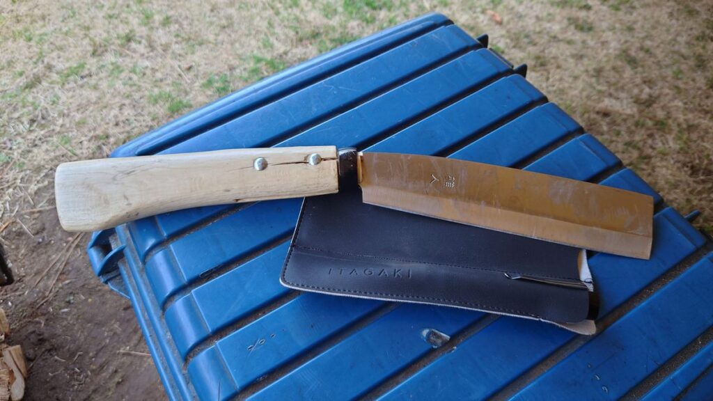 その頃家で使っていた鉈と言えば、全金属製^^刃から持ち手まで全部金属でできておりまして、持ち手にも、何も巻いていない全く無機質な鉈でした。形はまるで菜切包丁のごとく厳つく、頑丈でしたし、今手に入るなら欲しいと思っていますが、さすがにないですね。