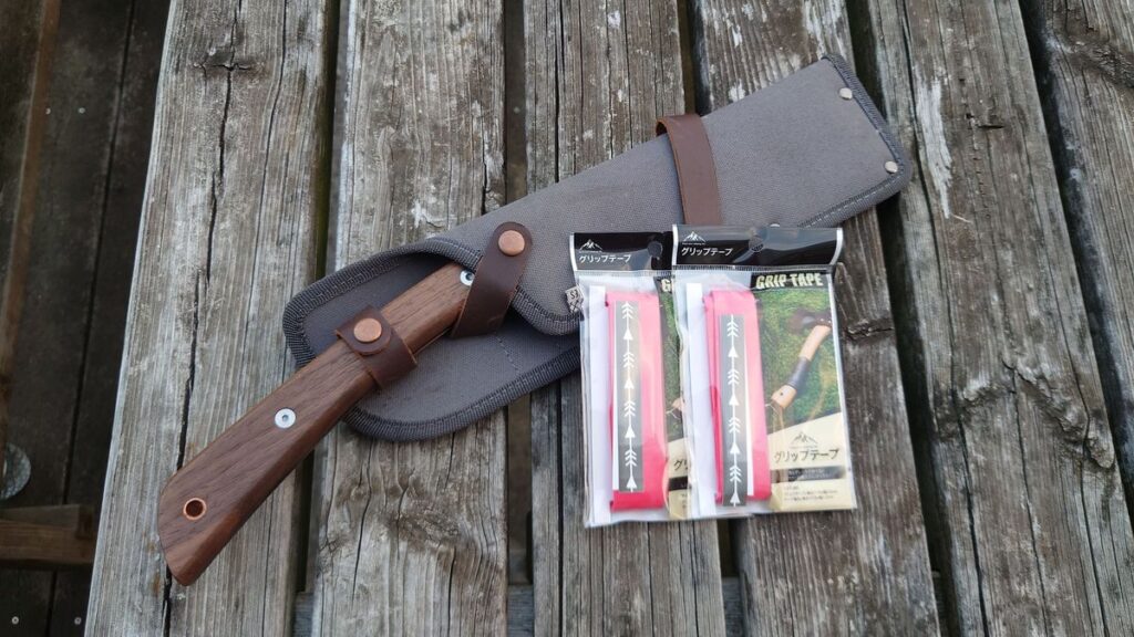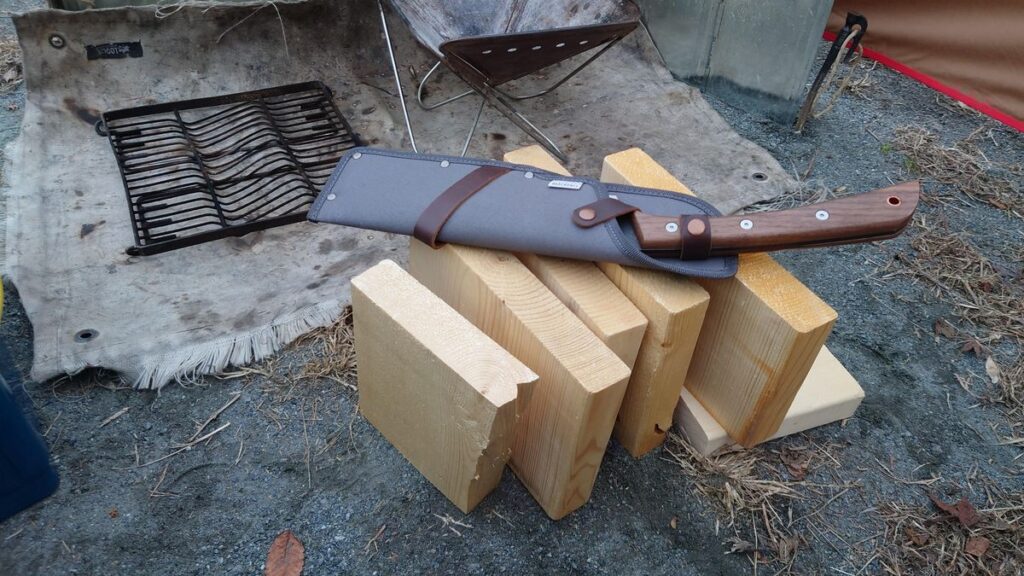 この鉈は、ファミリーキャンプをしていた頃にホームセンターで見つけて買った鉈ですが、10年以上現役で使うことができていました。片刃ですが、峰をペグハンマーでガンガンたたかれ、変形しながらも薪を割り続けてくれた堅牢品でありましたが、柄の部分にひびが入り、刃を十分固定することができなくなりリタイヤすることとなりました。